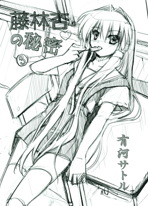2008年02月29日 杏化月間012 ラノベ風の杏 杏アフター3巻『藤林杏の秘密』有川堂書房より発売。(大嘘)ごめんなさいウソネタです。 こう体に広がる髪を描きたくて浮かんだのがアニメのペ○ちゃんキャンディーなめてるシーンでした。 絶対領域ヘアも抜かりありません。 もう上からがばーっとしたい!! WebTOPへ BlogTOPへ WEB拍手する